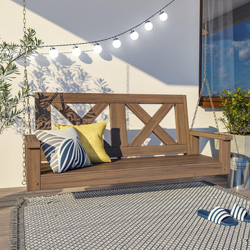 Basic porch swings often come with included chain to hang your swing from the ceiling or stand. However, for an upgraded style many designers are swapping chains for hanging ropes. Our selection of porch swings with optional rope provides this upgraded look in a variety of sizes, styles, and materials.