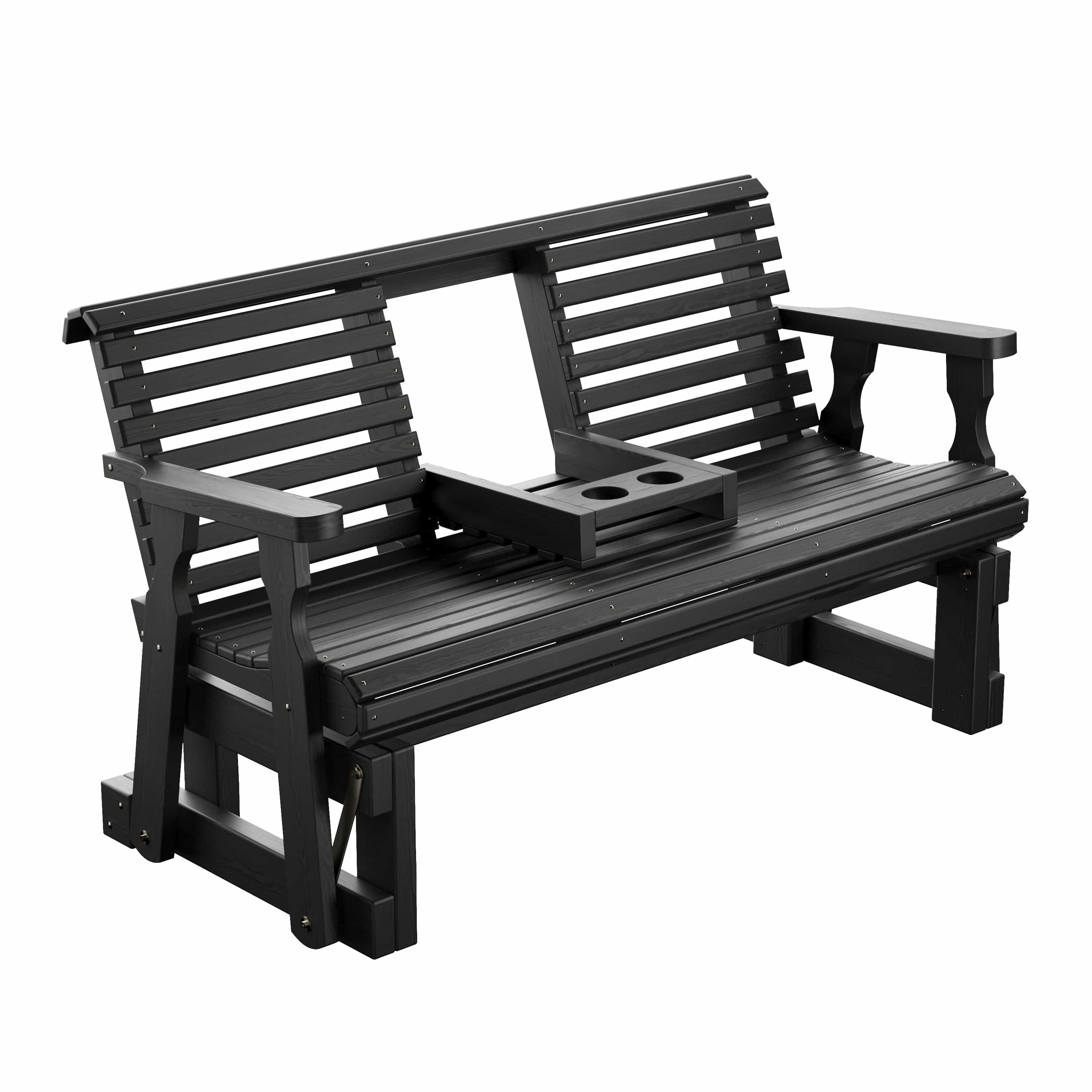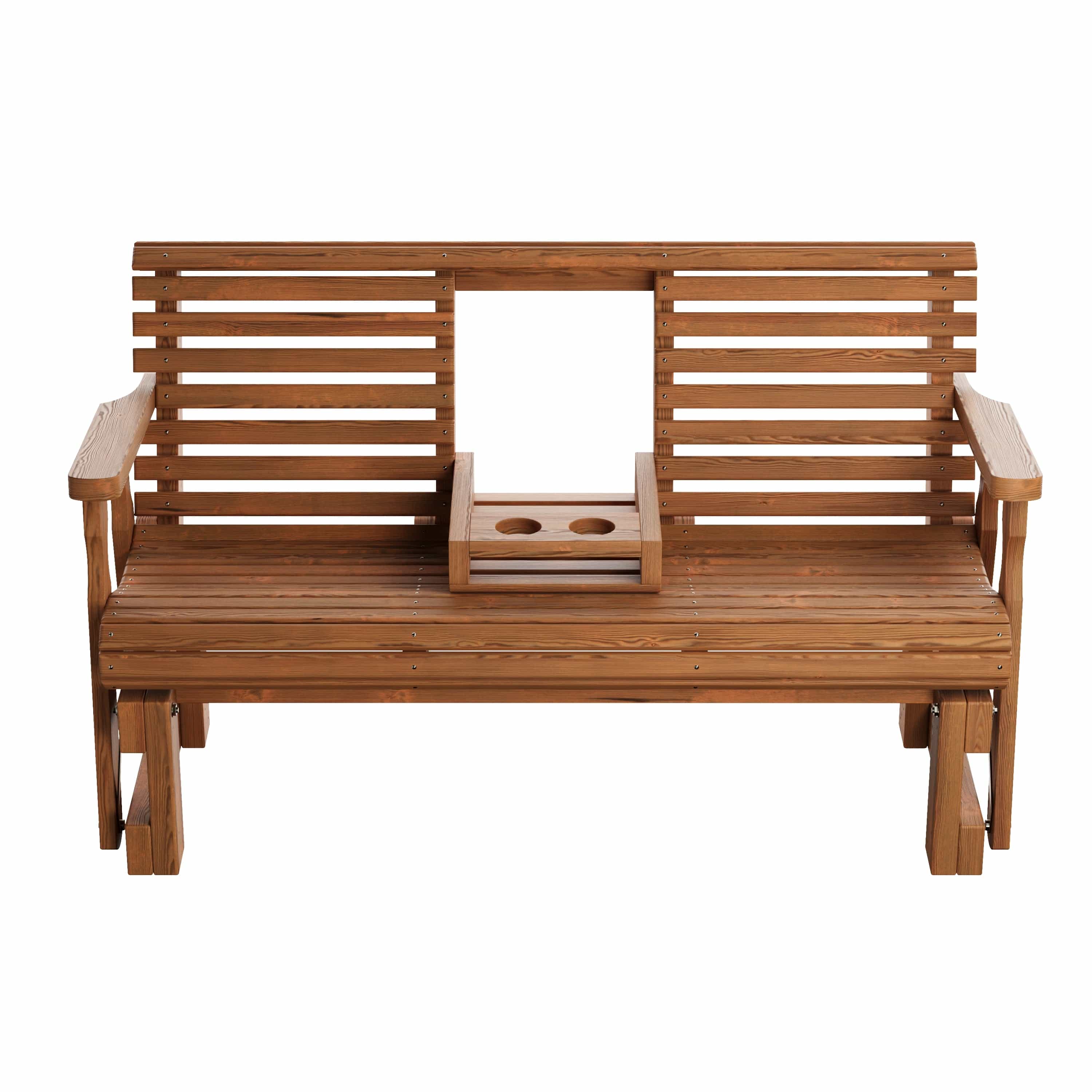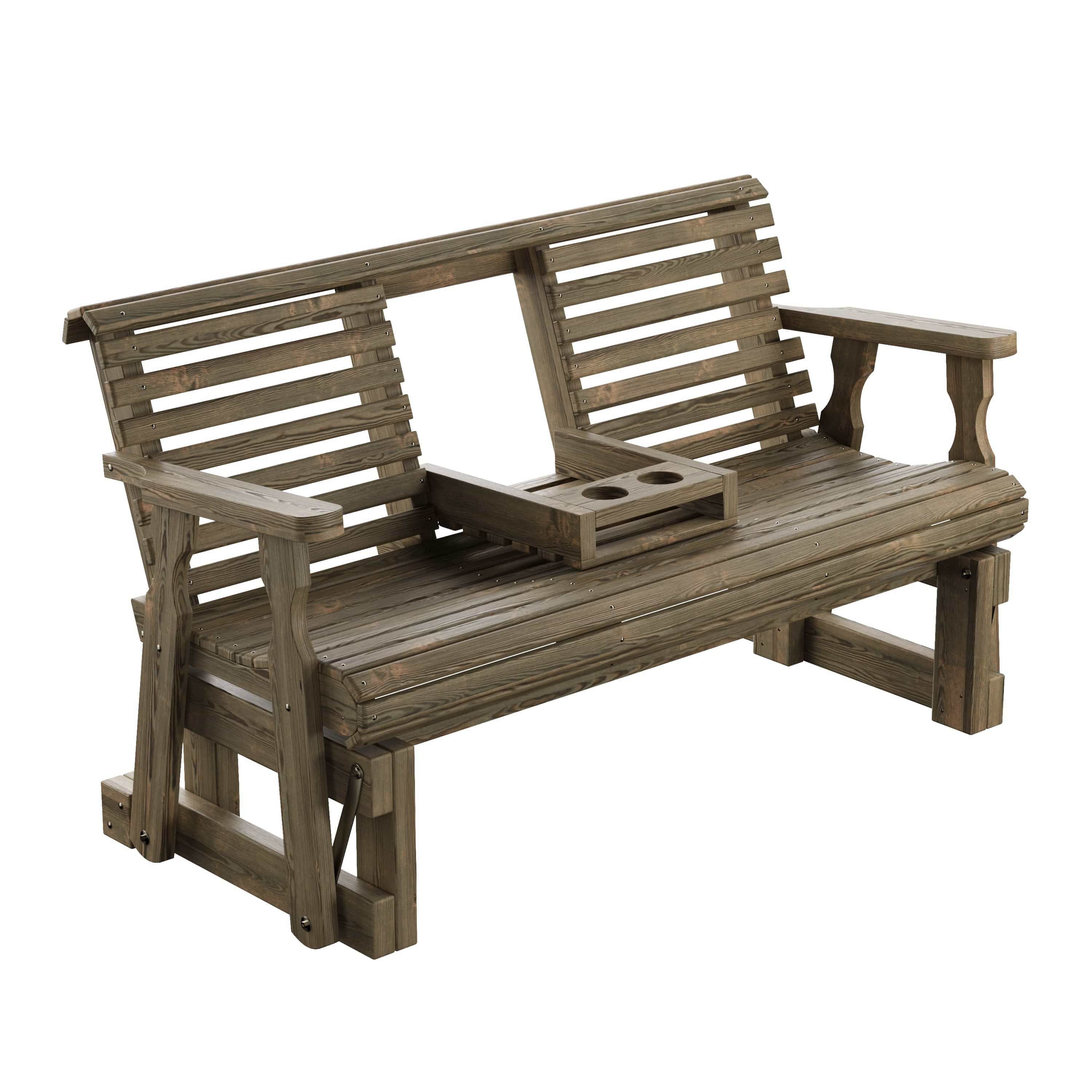 The Amish Casual Heavy Duty Rollback Console Glider by Amish Casual features a flip-down console in the middle that can hold up to two beverages. The center console can be flipped up when not in use to allow for more seating space. The Rollback Console Glider is made in the USA by skilled Amish Craftsmen.