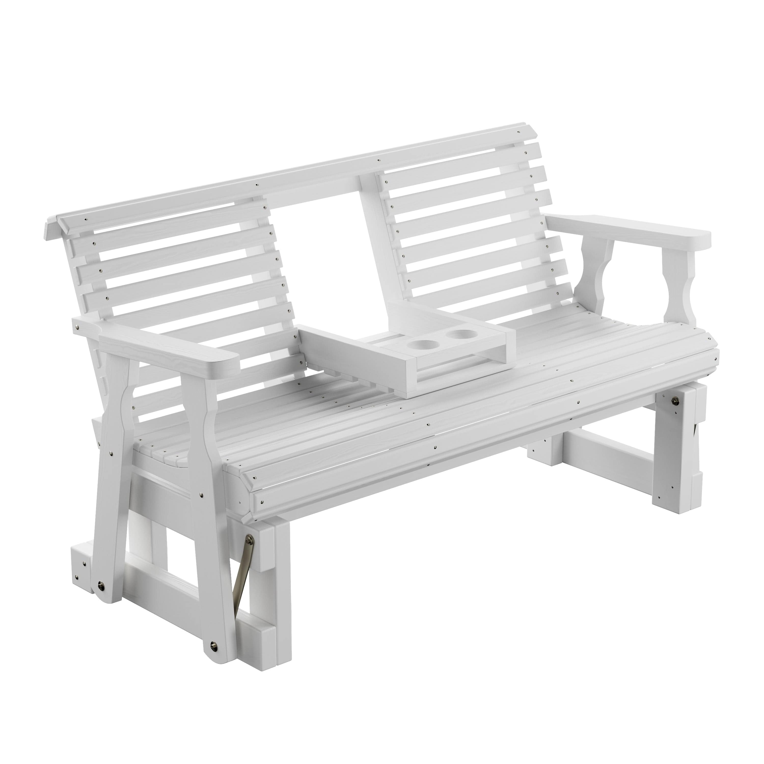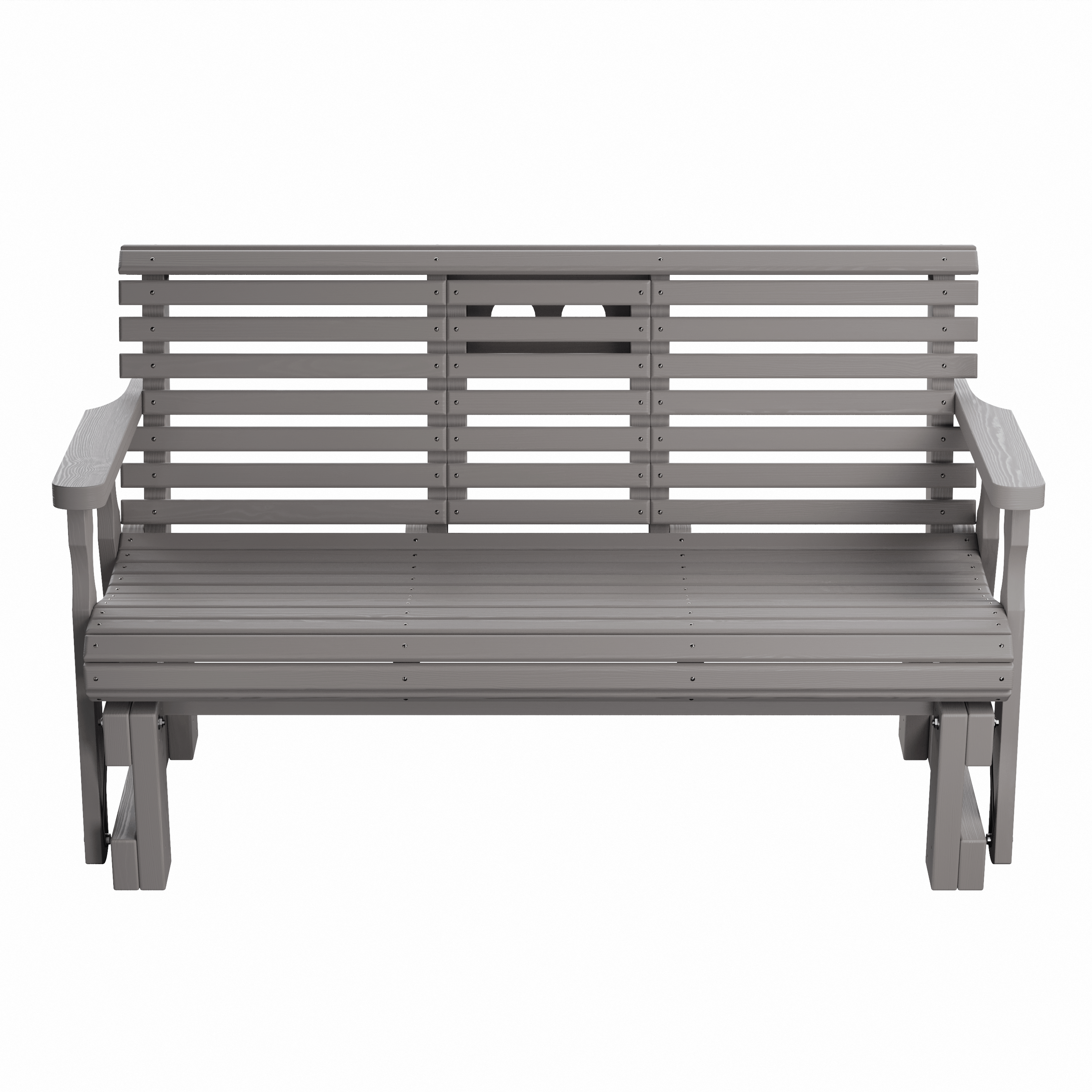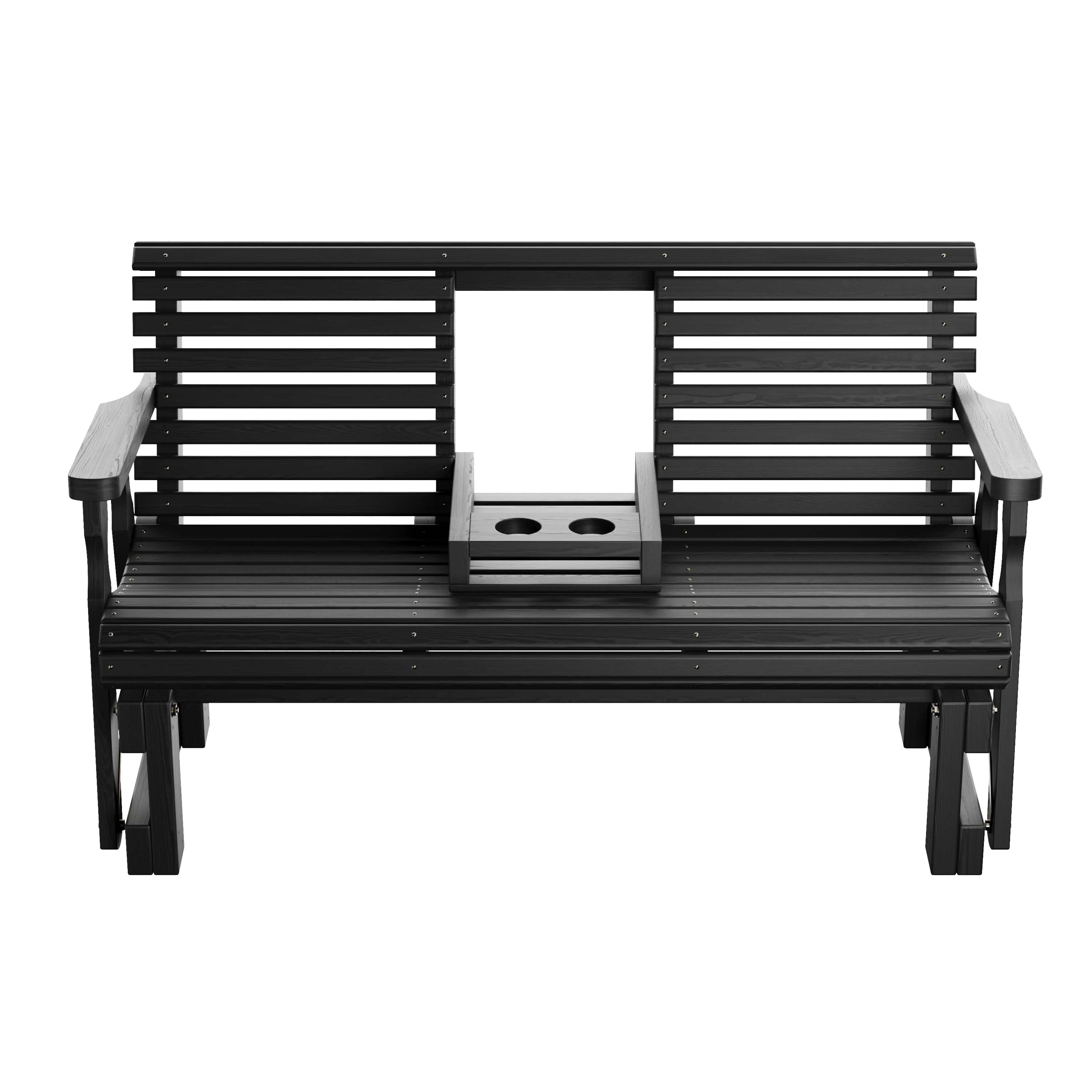 The Amish Casual Heavy Duty Rollback Console Glider by Amish Casual features a flip-down console in the middle that can hold up to two beverages. The center console can be flipped up when not in use to allow for more seating space. The Rollback Console Glider is made in the USA by skilled Amish Craftsmen.