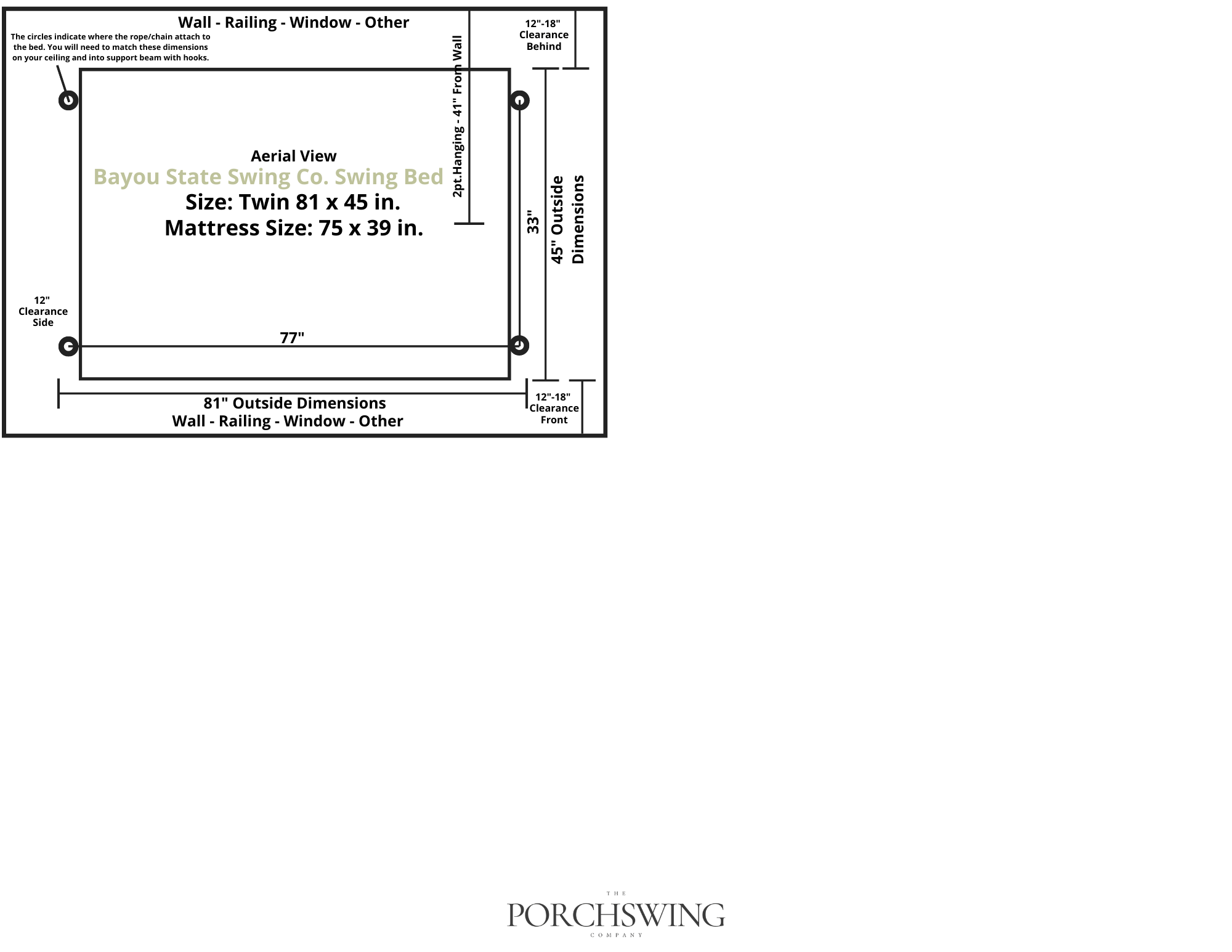 Discover the exquisite Bayou State Swing Co. Twin Cypress Porch Swing Bed - an expertly handcrafted item using sturdy cypress wood. Complete with galvanized hardware and standard hanging chains, this swing bed in twin size is designed for long-lasting use. Crafted in the USA, assembly is necessary.Mattress and pillows are not provided.
