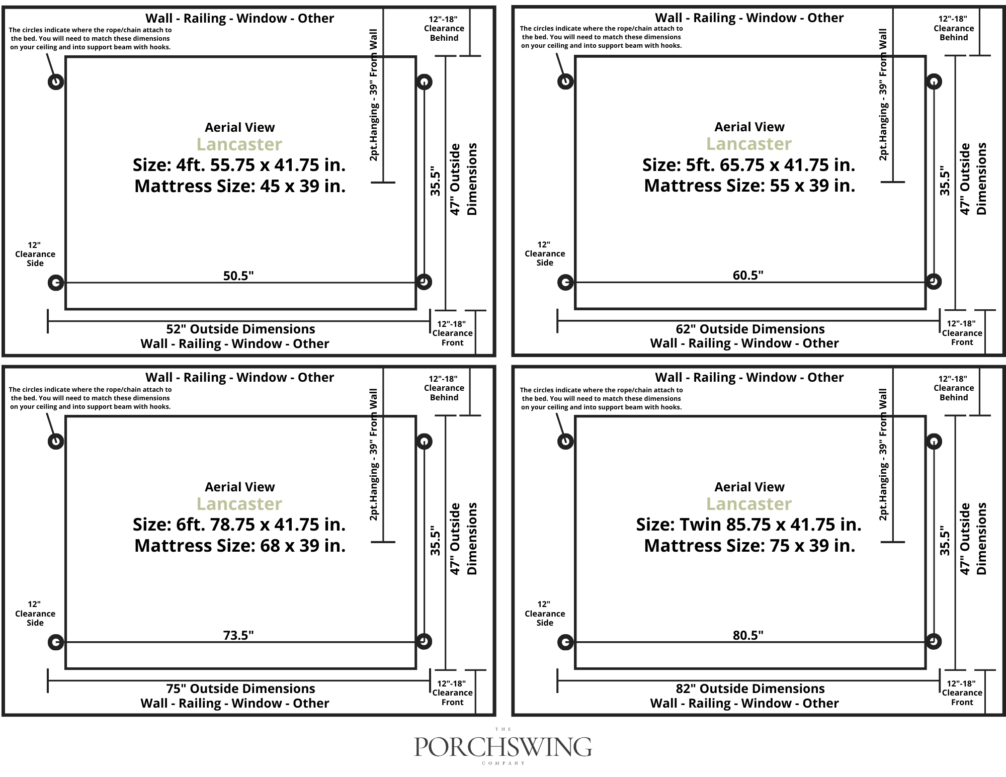Recommended Cushion Size: 4 Foot: 45W x 39D in. 5 Foot: 55W x 39D in. 6 Foot: 68W x 39D in. Twin: 75W x 39D in. Full: 75W x 54D in.