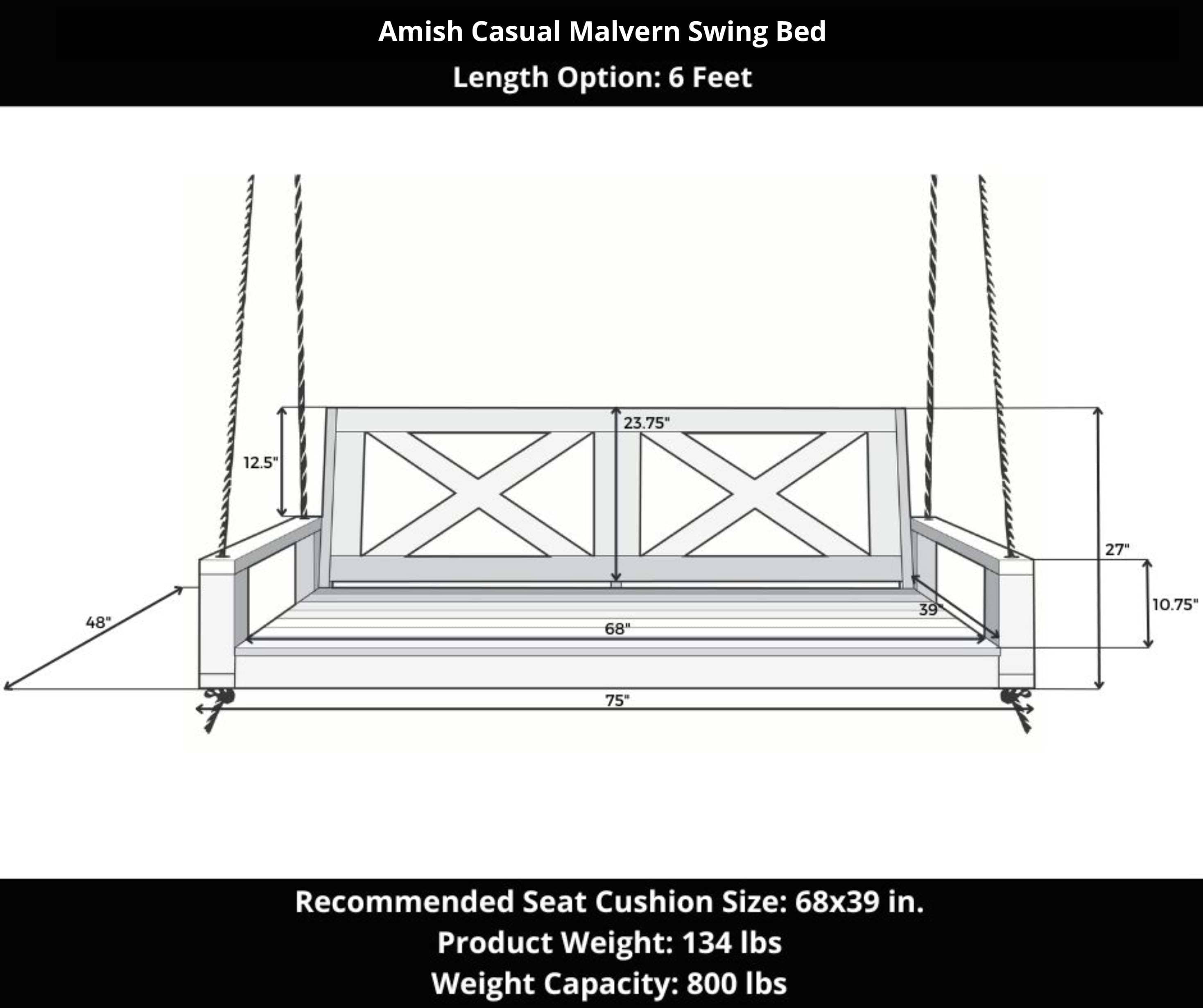 Amish Casual Malvern Porch Swing Bed, 6 Ft Unfinished