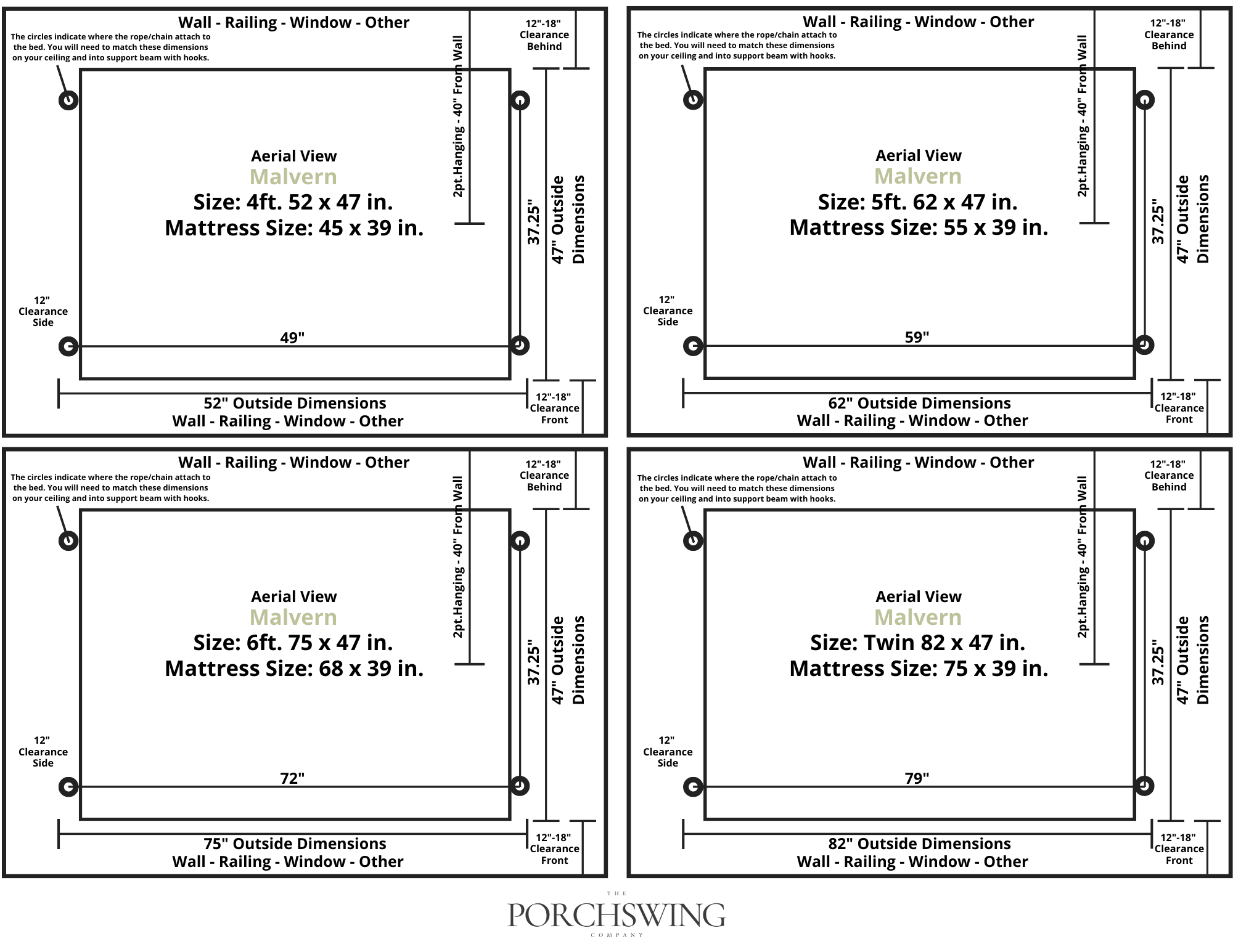 Twin: 82W x 47D x 27.5H in.