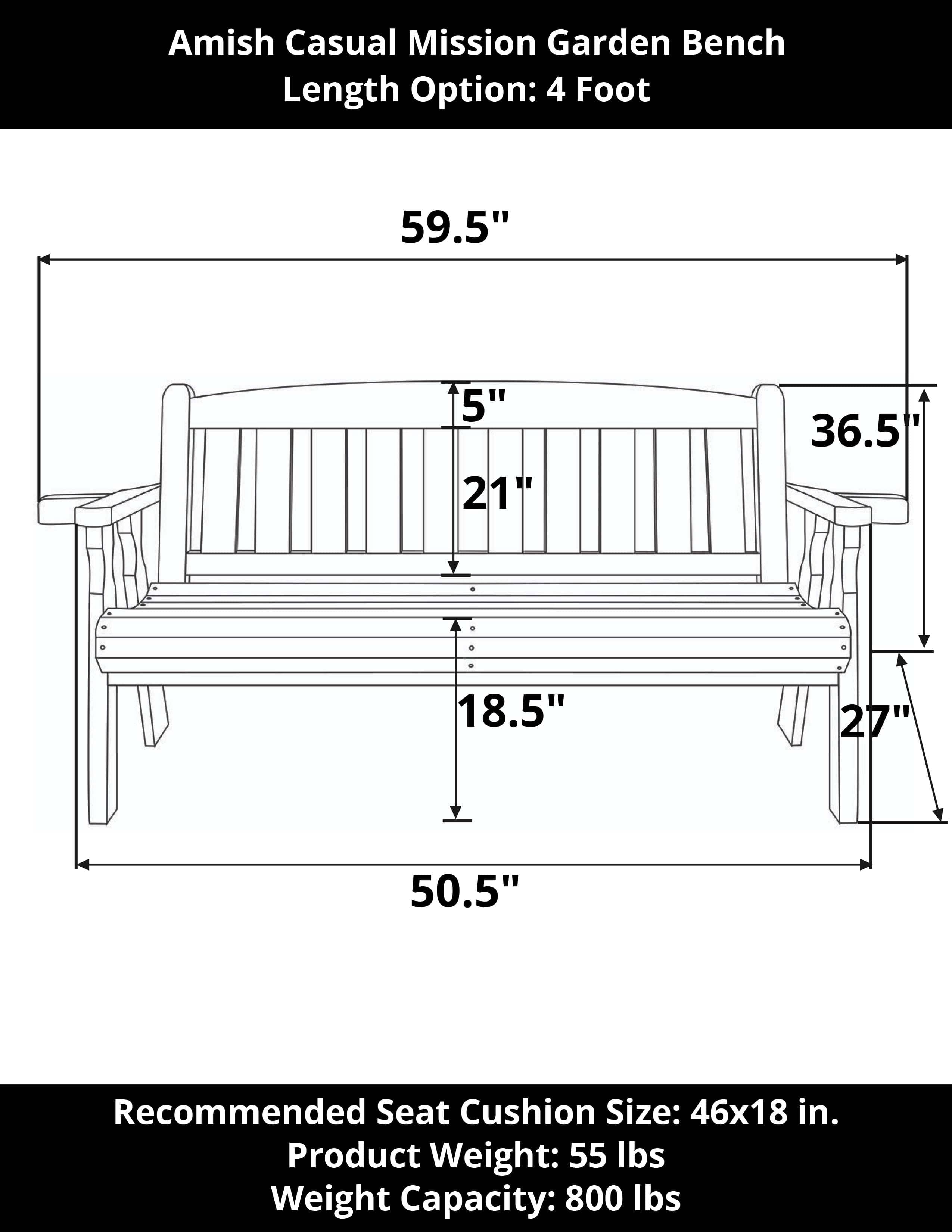 Amish Casual 4 Foot Mission Wood Garden Bench
