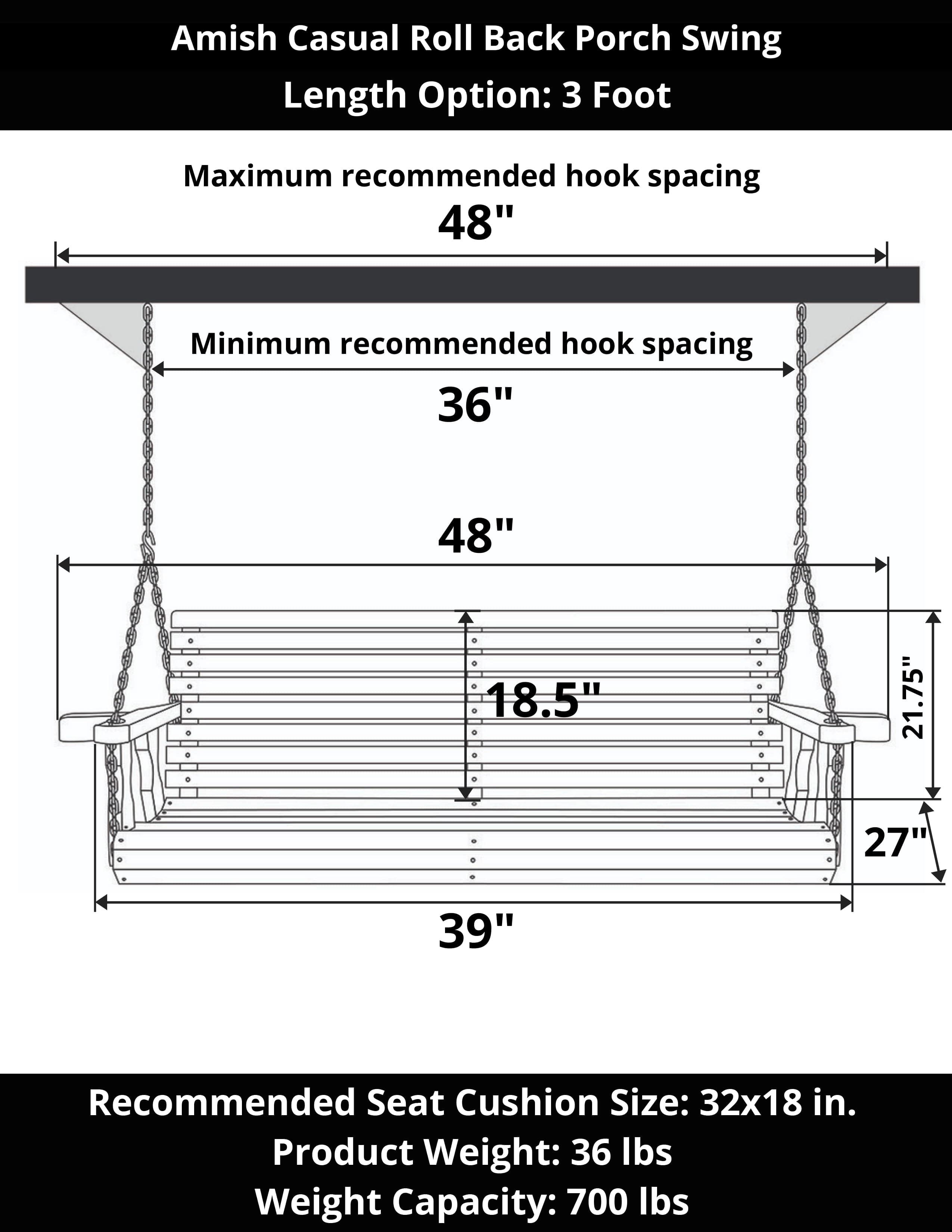 Amish Casual 3 Foot Roll Back Porch Swing in Cedar with Clearcoat Sale price$387.00