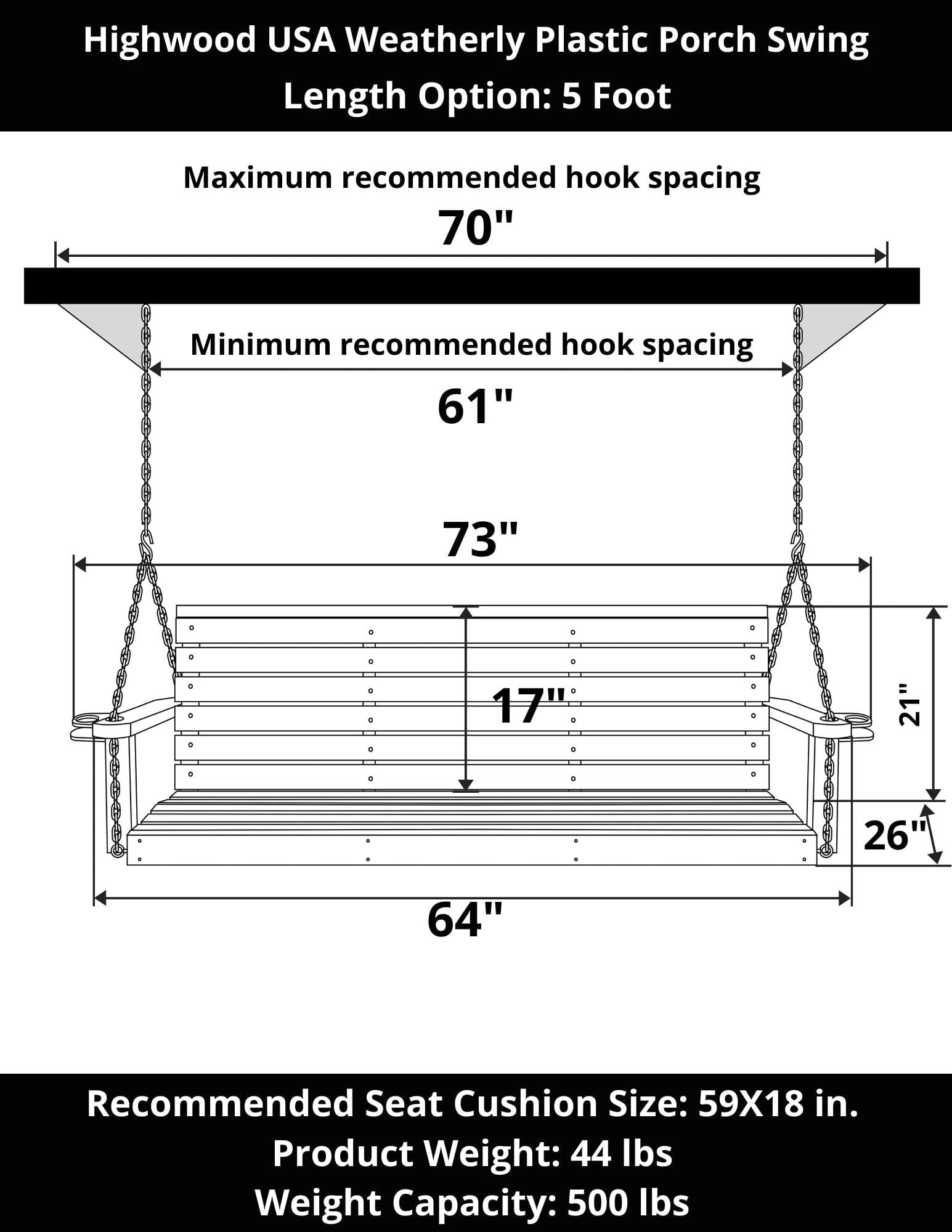 Introducing the Highwood USA Weatherly Recycled Plastic Porch Swing! Made from advanced, durable and weather-resistant recycled plastic, this swing boasts classic styling and a textured wood look without the headache of maintenance. Assembled with stainless steel hardware, it comes with a 12-year residential and 2-year commercial warranty. Made in the USA, it includes a free set of zinc-plated hanging chains for easy assembly. Enjoy the beauty of nature without the hassle of painting or staining.