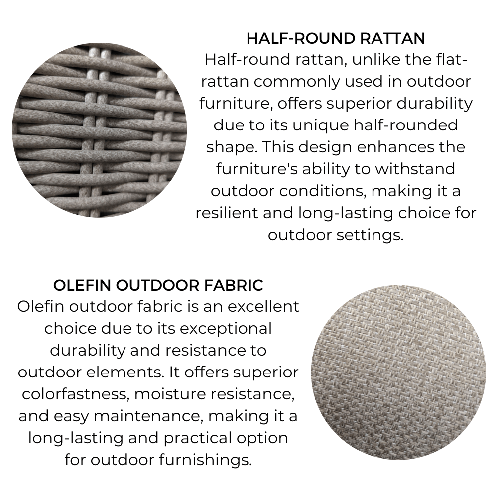 - Features thick, half-round rattan which is stronger than the typical flat-rattan used by most other outdoor furniture retailers
