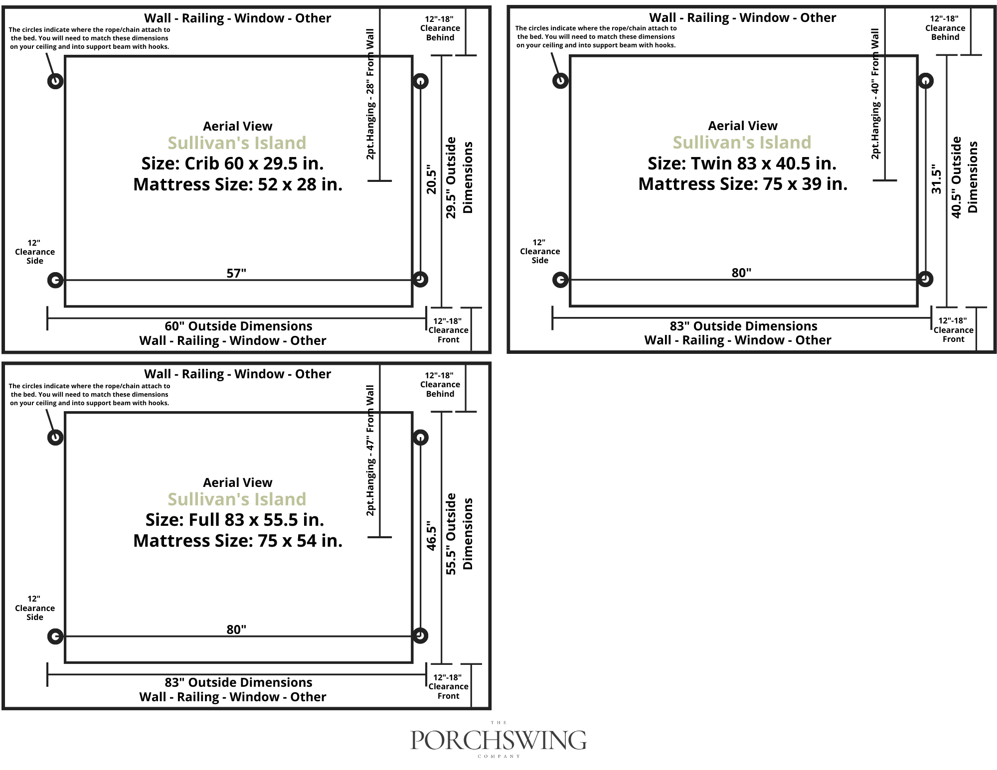 Experience ultimate relaxation on your porch with the Lowcountry Swing Beds Crib. The inviting design beckons you to climb right in from two sides. Available in four wood options and multiple sizes, choose between a black or tan rope hanging kit for a versatile look. Made in the USA and easily assembled, this daybed swing is perfect for any porch. Mattress and pillows sold separately.