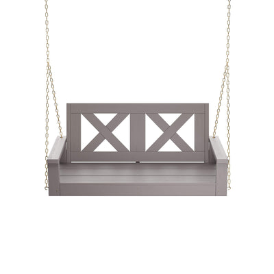 Expertly crafted by Amish craftsmen in Pennsylvania, the Porchgate Amish Heavy Duty Farmhouse Porch Swing is made of high-quality, Grade A kiln dried yellow pine for long-lasting durability. Its criss cross backrest exudes farmhouse style, while the eco-friendly soy based stain provides advanced bio-based technology for added protection. With rust and corrosion resistant hardware and standard hanging chains, this swing is perfect for any 8 foot ceiling. Made in the USA and requiring assembly, it's the perfect addition to any porch or outdoor space. Grade A kiln-dried yellow pine. Whether left unfinished or enhanced with an eco-friendly soy-based stain, this swing is built to last and elevate any outdoor space.