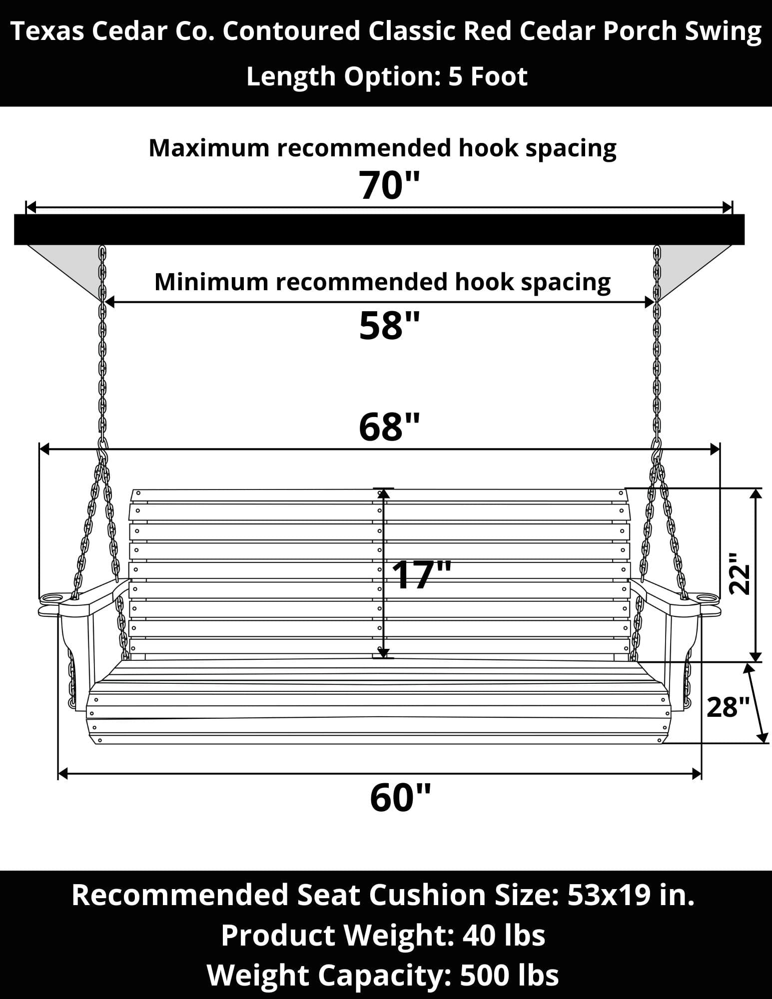 Texas Cedar Co. Contoured Classic Red Cedar 5-Foot Porch Swing